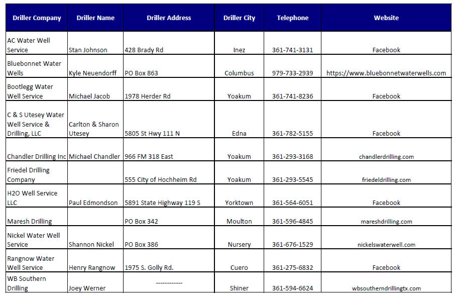Please note: The list of water well drillers above is provided as a courtesy of PVGCD, and in no way an endorsement of any of the listed companies.